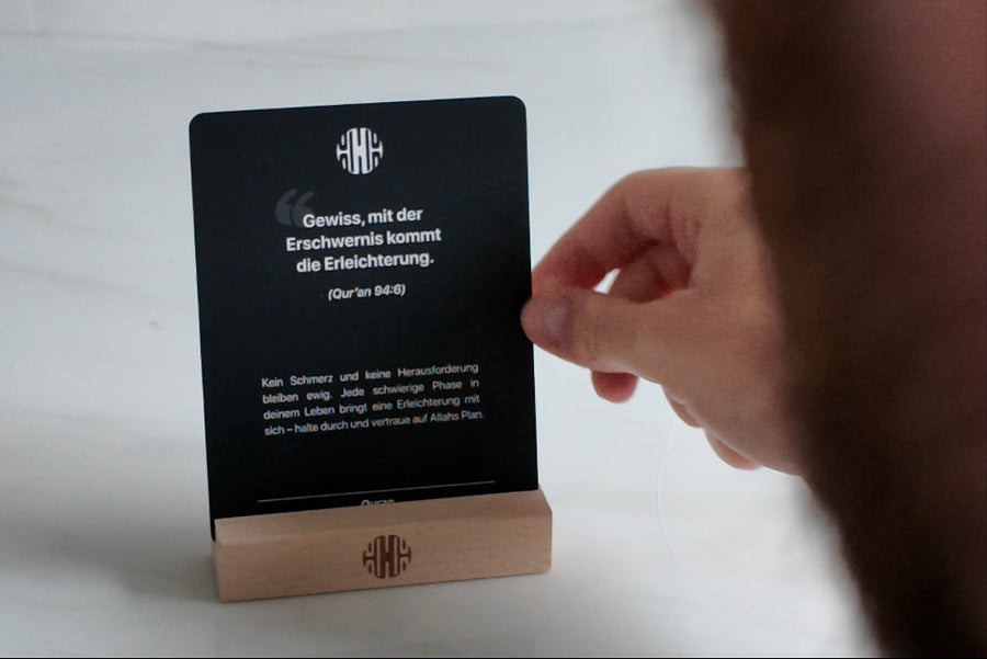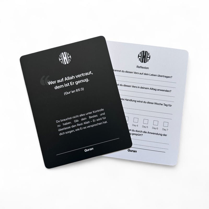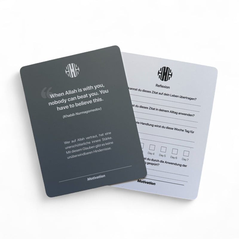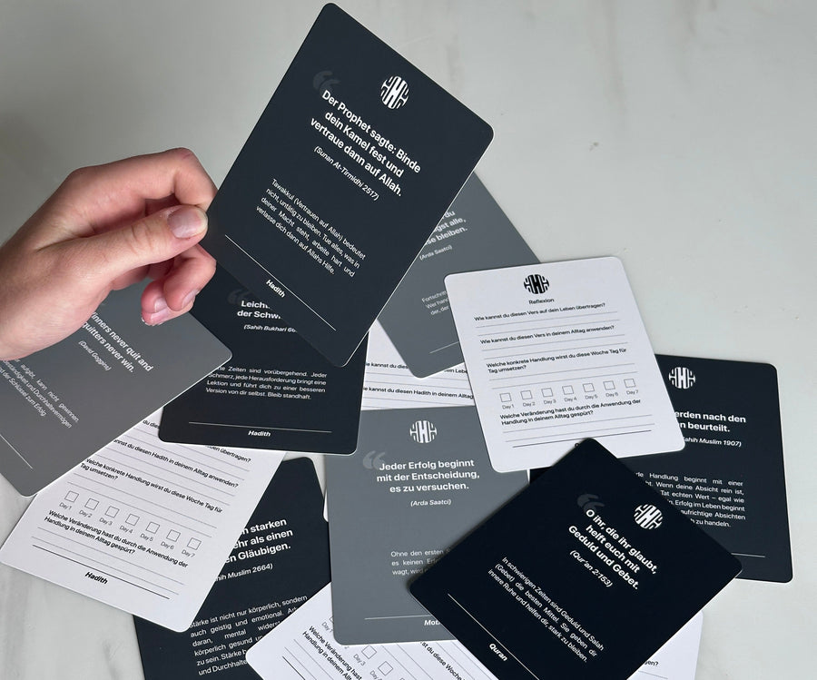 ,„Ich hab immer gedacht: ‘Disziplin heißt einfach durchziehen.’ Aber mir hat diese spirituelle Ausrichtung gefehlt. Die Hikma Cards verbinden das perfekt – Reminder, Fokus, Umsetzung. Einfach eine Karte, ein Ziel, ein Impact. Mein Tagesablauf ist nicht nur produktiver, sondern auch klarer ausgerichtet.“