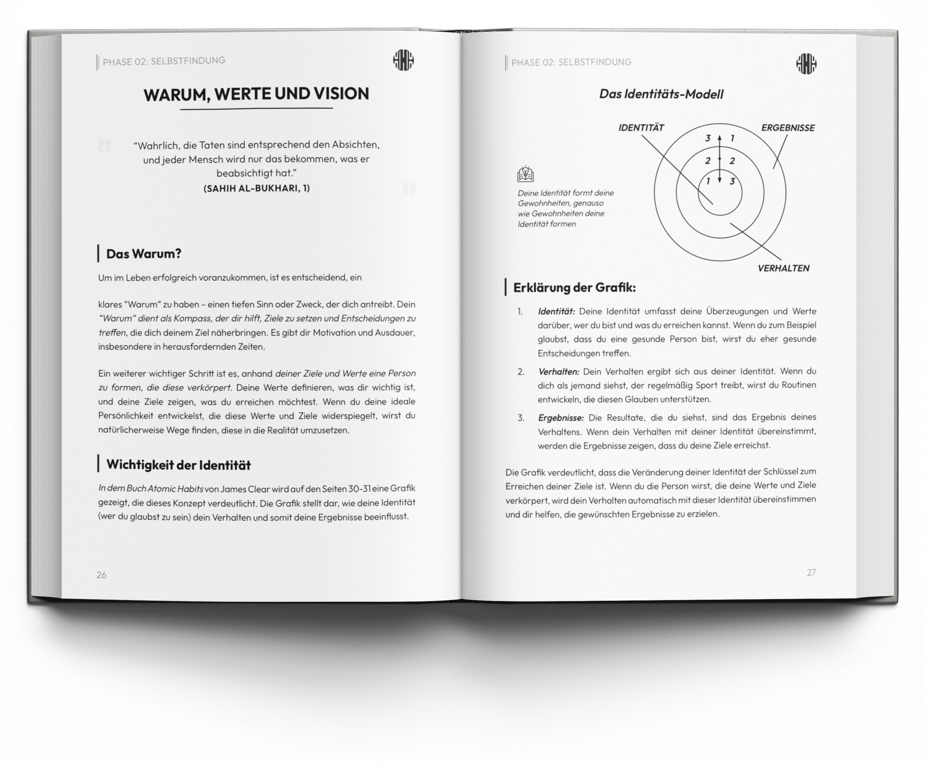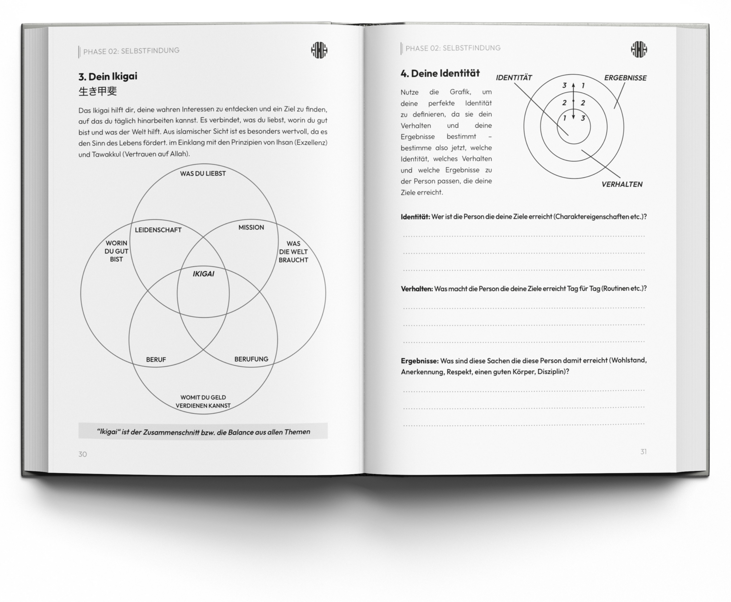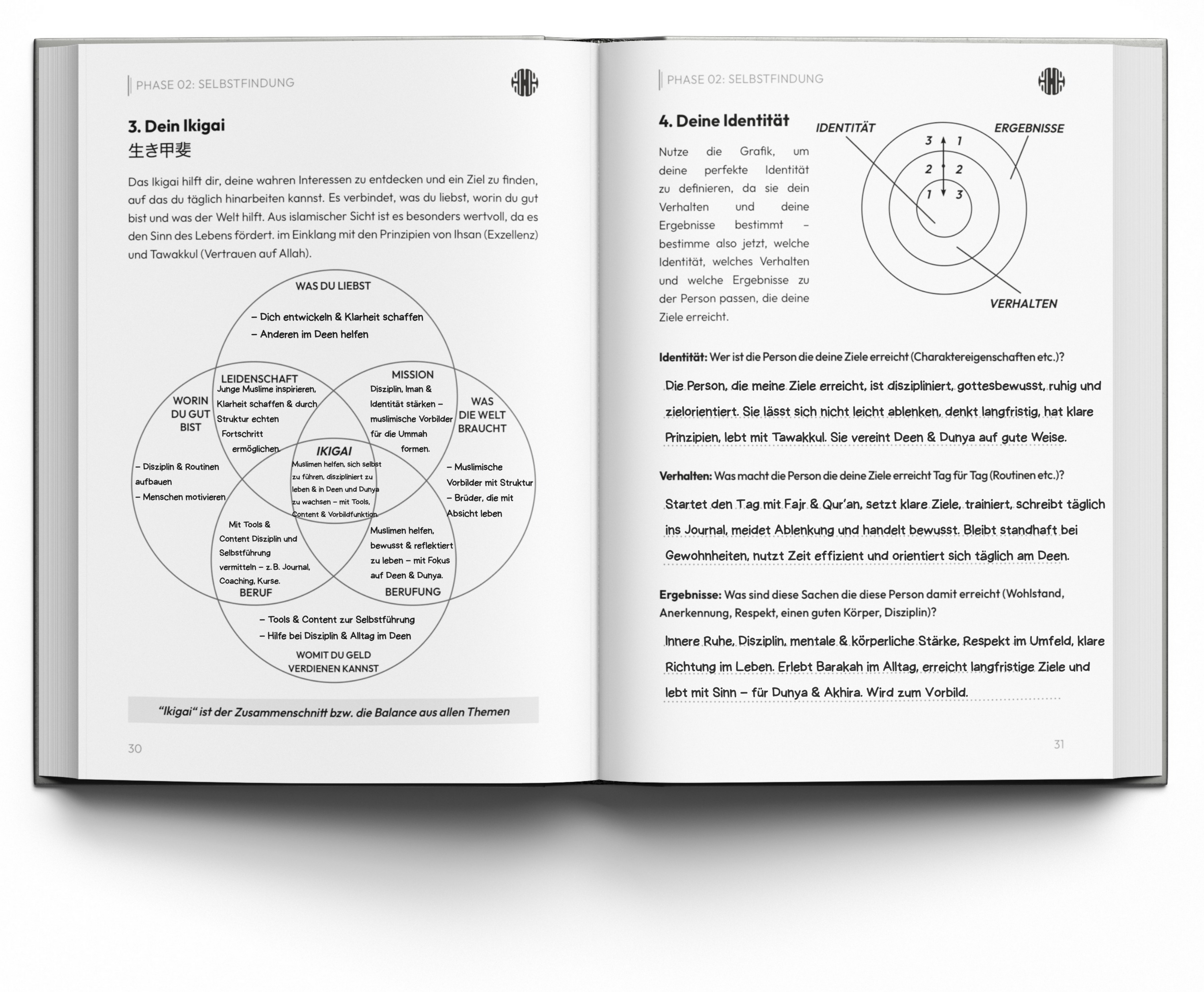 Wer willst du eigentlich sein? Mit dem Ikigai-Modell, deinen Werten,islamischer Identität und dem Identitätskonzept von James Clear findest du dein Warum – also,wofür du losgehst. Diese Klarheit wird zur Basis deiner Ziele.