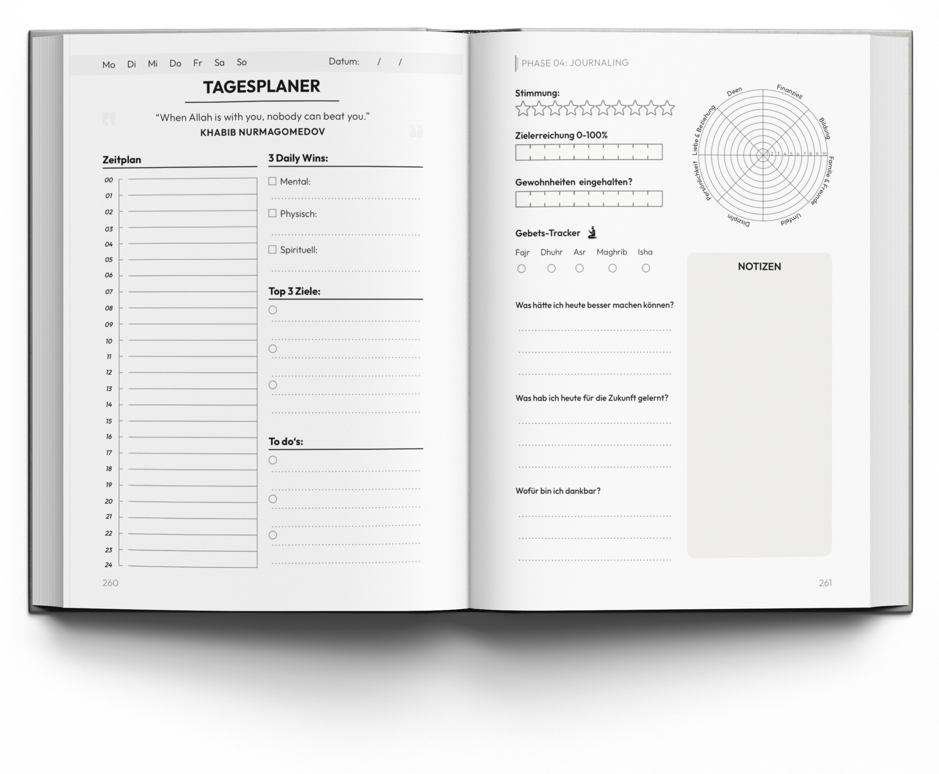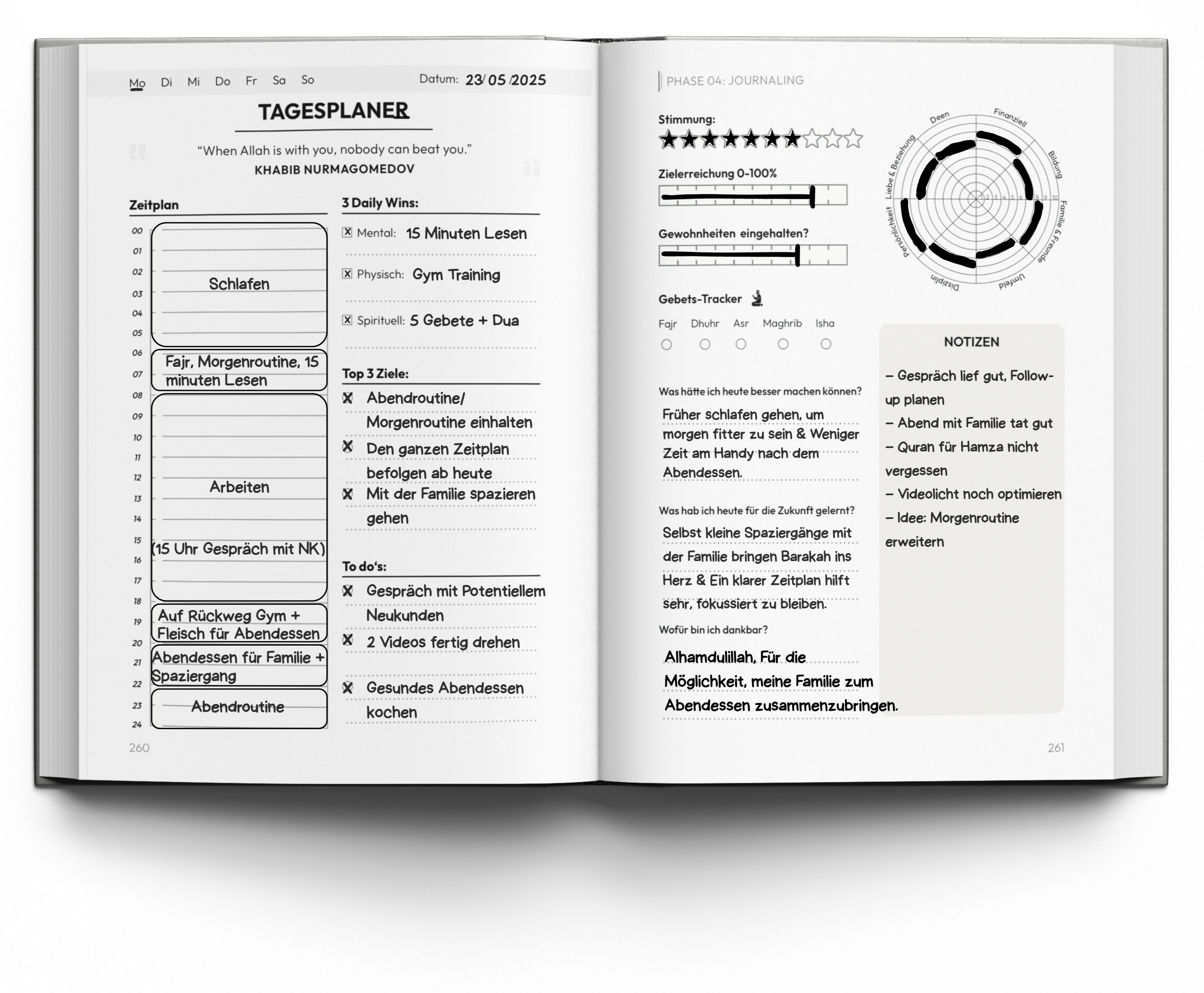 Es verbindet tägliche Planung mit islamischer Spiritualität – und macht Veränderung wirklich messbar.